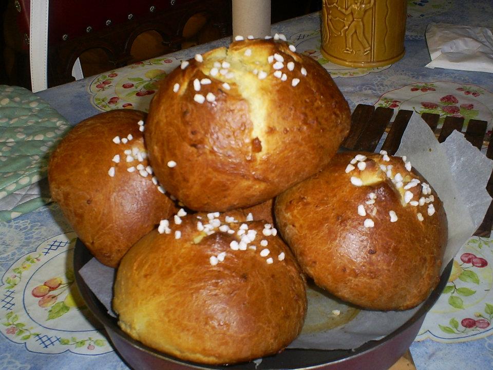 Préchauffez le four 130° pendant 15 min. Concassez le sucre, badigeonnez les mounas de jaunes d'oeufs diluez avec un peu d'eau.